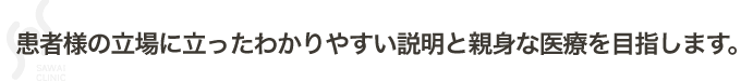 さわいリウマチ整形外科クリニックは患者様の立場に立ったわかりやすい説明と親身な医療を目指します。クリニックの理念は感謝