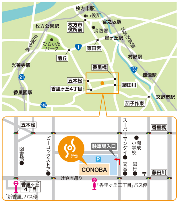 〒573-0084 枚方市香里ケ丘3-11-1 CONOBA香里ケ丘213