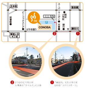 ※CONOBA駐車場と間違われて、他の駐車場に駐車され割引特典が受けられないお客様が多数おられます。 CONOBA駐車場は、施設裏手の84台分の「タイムズ」のみですので、ご注意ください。